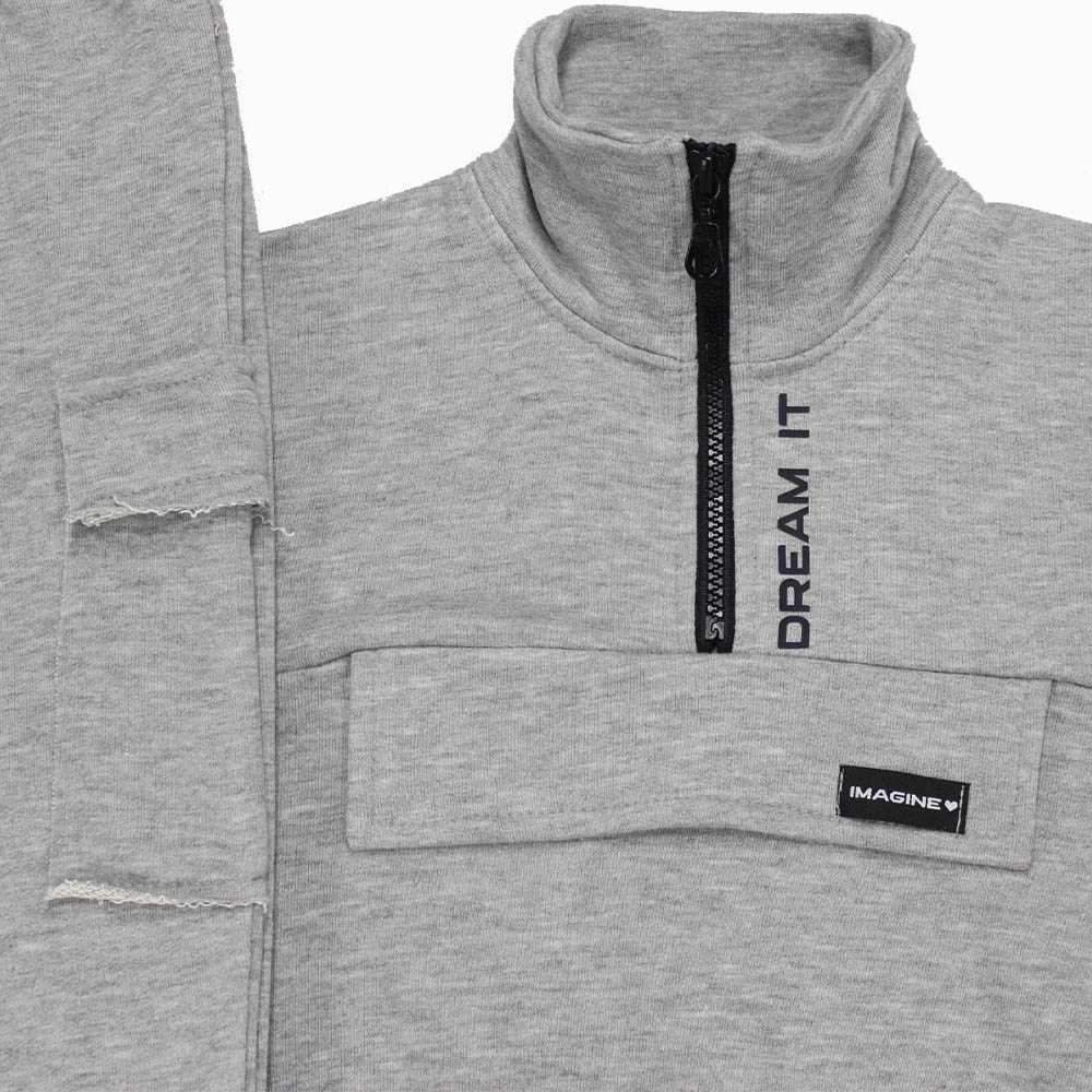 Μπλούζα με γιακά, λάστιχο, φερμουάρ, label και μονόχρωμο τύπωμα